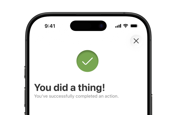 The design pattern was coded into a consumable component. This meant that designers could copy the success screen into their Figma file, use the embedded guidelines to write content and hand it off to development. Their tech team could then use the code from the design system to limit development time. When it came time to update icon designs, the success screen updates went live across every instance without individual team adoption.